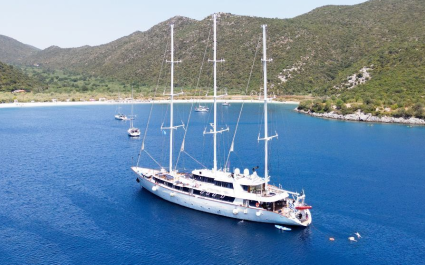 Imagine 173 feet of comfort, sleek beauty, and safety classified by the latest International “Safety of Life at Sea” (SOLAS) standards. Imagine your floating home on board the sleek, classic design Motor Sailer as she spreads her white sails through the seas under the name PANORAMA, waving her Greek flag through the wind. Discover the world by sea at 11 knots, in her un-rushed pace, one island or seashore at a time on board the ultimate 3 masted motor sailer cruiser. Panorama loves to seduce her select 49 guests with her classic lines and wood paneled lounges redefining what yachting was meant to be. A spacious lounge with ample space, dining areas decorated with warm colors, rich library and two decks for sunbathing, shaded areas and outdoor bar and loungers are just some of the elements that define her essence. 360° views of unobstructed ocean are your eyes’ canvas painted with ocean blue and deep green mountains. Embrace freedom as the Panorama sets her white sails seduced by the clear winds of the sea. Mingle with likeminded travelers in our public areas, enjoy a moment to yourself in our ample deck space, or retreat to one of our 25 ocean view cabin-sanctuaries all offering windows or portholes connecting you with mother nature’s wonders.